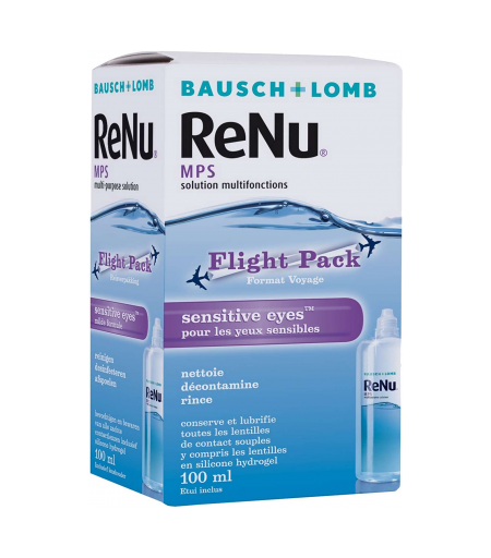 Parapharmacie > Hygiène & Premiers soins > Hygiène des yeux ReNu MPS Sensitive Eyes Solution Multifonctions Flight Pack 100 ml - Hygiène des yeux - Pharmacie en ligne LaSante.net