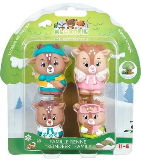 Découvrez la nouvelle famille Klorofil, tout droit venue des montages enneigées. C'est la famille Rennes, tous le nez en c?ur, qui a pour habitude d'accompagner le père-Noël au moment des fêtes. Rudy le papa, Astrid la maman, Sten le fils et Helga la fille. De nouveaux personnages à collectionner. Idéal pour mettre en scène les univers Klorofil. Pour se raconter toujours plus d'histoires. Attention:À utiliser sous la surveillance d¿un adulte.La livraison depuis la France est prévue dans 5 jours ouvrés, n'hésitez pas à passer votre commande ...