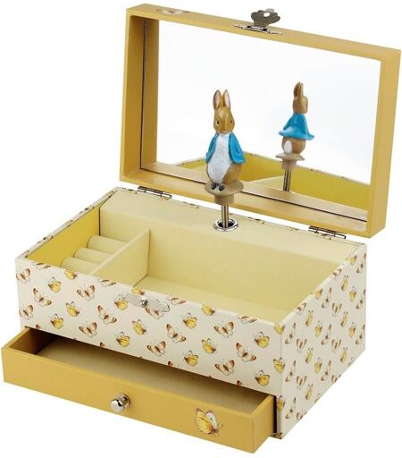 UNE BOÎTE MUSICALE POUR RANGER SES TRESORS : Cette boîte à musique disposant d'un tiroir, d'un grand miroir et d'un baguier, émerveillera l'enfant qui y rangera ses trésors. Actionnez la manivelle et la figurine Pierre Lapin s\u2019anime comme par magie au son de la musique ! Peter Rabbit (The Tale of Peter Rabbit) est un livre pour enfants écrit et illustré par l'écrivaine anglaise Beatrix Potter au début du 20è siècle : Pierre Lapin est un peu désobéissant et rebelle avec les adultes, mais il est courageux, plein d'imagination et entouré d'amis fidèles. IDÉAL DÈS LA NAISSANCE : Ce coffret musical sera du plus bel effet pour décorer la chambre de l'enfant. EVEILLEZ VOTRE ENFANT : initiez vos tout petits à la musique classique avec sa douce berceuse inspirée du ""Printemps"" de Vivaldi. La figurine Pierre Lapin tourne au son de la musique. UN CADEAU INTEMPOREL : Une boîte à musique est un objet intemporel que l\u2019on garde précieusement comme un symbole de l'enfance. Sa mélodie et les souvenirs qui l'accompagnent resteront longtemps gravés dans la mémoire de l'enfant. UNE MARQUE FÉÉRIQUE : Plongez dans l\u2019univers magique de TROUSSELIER avec leurs boites à musique et boites à bijoux, les veilleuses, doudous, mobiles musicaux, hochets & autres jouets qui berceront l\u2019enfance de vos tout petits..La livraison depuis la France est prévue dans 5 jours ouvrés, n'hésitez pas à passer votre commande ...