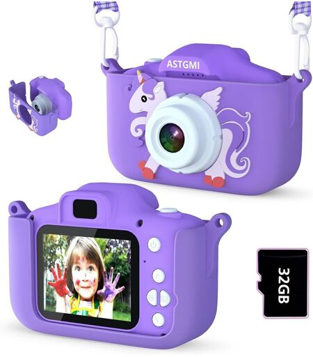 MULTIFONCTIONS ET JEUX Cette caméra selfie pour enfants intègre de nombreuses fonctions, telles que la capture de photos, l'enregistrement vidéo, la prise de vue en accéléré, l'arrêt automatique, 15 cadres amusants de dessins animés mignons et 6 différents effets de filtres , vos enfants peuvent bricoler leurs photos; 5 jeux de réflexion (Snaker, Tetris et Sokoban..) et différentes langues disponibles, qui apporteront plus de plaisir aux enfants, développeront leur imagination. 32 G CARTE et 650 MAH La batterie intégrée de 650 mah offre une utilisation portable pratique pendant environ 4 heures et un arrêt automatique pris en charge de 3 à 5 minutes préserve la de la batterie. Livré également avec une carte SD de 32 Go et un câble USB et peut contenir environ 5000 photos. Les enfants peuvent enregistrer les photos téléchargées à temps et organiser les collectionner. AVEC UNE JOLIE COQUE EN SILICONE Nous avons conçu une jolie coque en silicone souple et écologique pour l'appareil photo ;Conception unique de taille mignonne et compacte, Plus apprécié des enfants. Dans le même temps, Il peut protéger efficacement l'appareil photo en cas de choc, de choc ou de chute. 8 MEGAPIXEL 1080P Cet appareil photo numérique a une caméra HD 8 mégapixels et 1080P, ce qui améliore la netteté des images par rapport aux caméras traditionnelles. Ainsi, il enregistrera des moments encore meilleurs pour les garçons et les filles. Cet appareil photo est un jouet pour enfants, ne comparez pas les données de référence avec un appareil photo professionnel. MEILLEUR CADEAU POUR LES ENFANTS L'appareil photo de l'enfant est emballé dans un coffret cadeau exquis, idéal pour les vacances anniversaire Noël des enfants. Plus important encore, les enfants peuvent commencer à observer et enregistrer les détails du monde à travers l'objectif, en profitant du plaisir de prendre des photos. Donnez à vos enfants plus d'initiative, laissez-les jouer et apprendre et créer plus de plaisir dans leur enfance. Attention:Ne convient pas aux enfants de moins de 36 mois.La livraison depuis la France est prévue dans 5 jours ouvrés, n'hésitez pas à passer votre commande ...