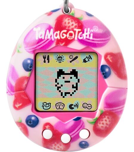 TAMAGOTCHI ORIGINAL - Le jouet original des années 90 est de retour : l'animal de compagnie virtuel Tamagotchi et mascotte de votre enfance est de retour dans son format original. Version Française. JOUET TAMAGOTCHI DESIGN - Modèle joliment fruité Berry Delicious. Le Tamagotchi original est fidèle à sa création dans les années 90 mais les modèles se renouvellent dans plein de styles. Fonctionne avec 1 pile CR2032 (incluse). ANIMAL INTERACTIF A FAIRE ÉVOLUER - Prenez soin de votre Tamagotchi : Nourrissez-le, allumez/éteignez les lumières s\u2019il dort, jouez avec, donnez-lui des médicaments s\u2019il est malade, tirez la châsse d\u2019eau après avoir utilisé les toilettes, vérifiez sa santé\u2026 Il y a toujours quelque chose à faire avec votre Tama virtuel. JOUET ENFANT 8 ANS ET + - Tamagotchi Original est adapté pour les enfants de 8 ans et plus. Un jouet électronique ludique et qui apprend à s'occuper d'un animal interactif. Comment votre Tamagotchi grandira-t-il ? Élevez votre Tamagotchi de l\u2019état d'?uf à l'âge adulte et découvrez quel personnage adulte vous obtiendrez : la façon dont vous prenez soin de votre animal virtuel déterminera son apparence finale. MINI-JEU TAMAGOTCHI INCLUS - Chaque Tamagotchi original contient un ou deux jeux super funs : icône ou nombre. De quoi s'amuser en plus de faire évoluer son petit animal interactif. COLLECTION TAMAGOTCHI - Plusieurs modèles de Tamagotchi existent : les originaux des années 90, les Nano en format mini, et les Tamagotchi Uni en version connectée. Attention:Contient un jouet. La surveillance d'un adulte est recommandée Attention:Ne convient pas aux enfants de moins de 8 ans. À utiliser sous la surveillance d'un adulte Attention:À utiliser sous la surveillance d\u2019un adulte.La livraison depuis la France est prévue dans 5 jours ouvrés, n'hésitez pas à passer votre commande ...