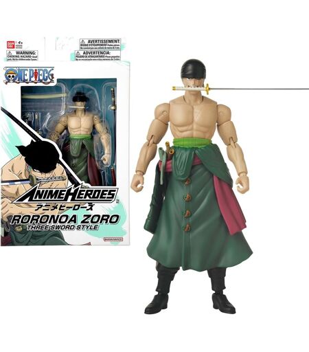LICENCE OFFICIELLE ONE PIECE - Figurine manga collector issue de la série One Piece, quit suit l'histoire de l'équipage des Chapeaux de Paille. Un jouet officiel de la licence One Piece distribué par Bandai, collection Anime Heroes. FIGURINE MANGA - Figurine articulée de Roronoa Zoro, l\u2019épéiste de l\u2019équipage des Chapeaux de Paille dans One Piece. Il est prêt au combat avec son bandeau noir attaché et ses 3 sabres dont un tenu entre ses dents comme c'est sa spécialité. Modèle Three Sword Style. FIGURINE ARTICULÉE - Figurine One Piece de 17 cm, très détaillée avec 16 points d'articulation. Une figurine articulée de Zoro idéale pour jouer ou pour être exposée. ACCESSOIRES INCLUS AVEC LA FIGURINE - Reproduisez les plus grands combats de Zoro dans One Piece, grâce aux accessoires inclus (3 katanas et leurs fourreaux). Pour faire de l\u2019ex Chasseur de Pirates le plus grand épéiste du monde ! JOUET ENFANT 4 ANS ET PLUS - Un jouet facile à manipuler à partir de 4 ans, ou un objet de collection pour les fans de One Piece. COLLECTION ANIME HEROES - Collectionnez toutes les figurines Anime Heroes de Bandai : Figurines One Piece, Naruto, Jujutsu Kaisen, Bleach\u2026 Attention:Contient un jouet. La surveillance d'un adulte est recommandée Attention:Ne convient pas aux enfants de moins de 36 mois Attention:À utiliser sous la surveillance d\u2019un adulte.La livraison depuis la France est prévue dans 5 jours ouvrés, n'hésitez pas à passer votre commande ...