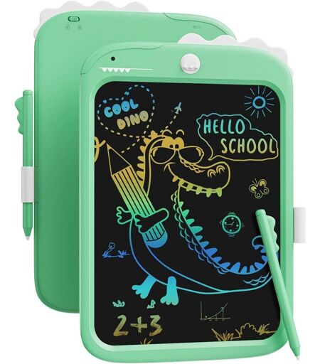 ¿¿Advanced Tablette d'écriture LCD colorée : Ce jouet dinosaure éducatif actualisé utilise une nouvelle génération de technologie d'affichage sensible à la pression. L'adorable tablette d'écriture LCD colorée pour dinosaures permet à votre enfant d'utiliser son imagination pour créer de magnifiques ?uvres d'art. ¿Multiples utilisations et facile à utiliser : Ce tableau d'écriture LCD peut être utilisé pour dessiner, gribouiller, écrire, compter et bien plus encore ! Parfait pour laisser des messages à la famille, des listes de courses, des listes de tâches, des recettes et même des mémos de bureau. Le nettoyage est facile ! Il suffit d'appuyer sur le bouton d'effacement pratique et vous ou votre enfant êtes prêts pour de nouveaux dessins et messages ! ¿Eye Protection & No Mess at Home : La tablette d'écriture LCD colorée avancée n'émet pas de radiations dangereuses qui peuvent endommager les yeux. Cette tablette d'écriture vous aide à éviter les nettoyages désordonnés et l'utilisation de produits chimiques nocifs. Elle respecte l'environnement en éliminant le besoin de papier, de craie, de crayons et de stylos. Il suffit d'effacer rapidement votre contenu en appuyant sur le bouton d'effacement ! ¿Longue durée de vie de la pile : Ce jouet d'apprentissage éducatif peut être utilisé au moins 120 000 fois avant de devoir changer la pile bouton incluse. Notre tablette d'écriture et de dessin LCD vous permet d'économiser plus de 50 000 feuilles de papier et vous aide à éviter les taches sur vos murs et vos tapis ! ¿Léger et portable : Avec un grand écran de 10 pouces, la tablette d'écriture LCD colorée avancée ne pèse que 0,45 lb. Elle est si légère qu'elle peut être mise dans un sac de voyage, un sac à dos, une mallette ou un sac à main, ce qui vous permet de l'emmener n'importe où ! La taille et le poids de cette tablette d'écriture LCD en font un jouet de voyage idéal pour les longs trajets en voiture et les voyages en voiture. Attention:Ne convient pas aux enfants de moins de 3 ans. À utiliser sous la surveillance d'un adulte Attention:À n'utiliser qu'en eau où l'enfant a pied et sous la surveillance d'un adulte.La livraison depuis la France est prévue dans 5 jours ouvrés, n'hésitez pas à passer votre commande ...