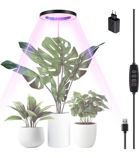 LUMIÈRE DE CROISSANCE 70 LEDS FULL SPECTRUM Cette lumière de croissance a des diodes très efficaces avec 70 LEDs. Elle émet toutes les longueurs d'onde de 380nm à 800nm, 5000K (35pcs de lumière blanche froide), 3000K (23pcs de lumière blanche c ), 625nm (8pcs de lumière rouge), 460nm (4pcs de lumière bleue), et convient à tous les stades de croissance et à diverses plantes telles que les succulentes et les orchidées herherhermonmonas, les tomates, etc. 3 MODES D'ÉCLAIRAGE ET 10 NIVEAUX DE GRADATION Notre lampe de culture est dotée de trois modes d'éclairage pour favor r efficacement la croissance des plantes. Elle dispose également de 10 niveaux de luminosité réglables (10 %-100 %) pour répondre aux besoins des différents types de plantes en termes d'intensité lumineuse. MINUTERIE 3/9/12H La lampe de culture pour plantes d'intérieur dispose d'une fonction de minuterie qui vous permet de régler la durée d'allumage et d'extinction sur 3 heures, 9 heures ou 12 heures par jour. Vos plantes recevront ainsi la bonne quantité de lumière et seront protégées d'une surexposition, ce qui est très important pour une croissance saine des plantes. LAMPES DE PLANTES RÉGLABLES EN HAUTEUR Cette lampe d'intérieur pour plantes est dotée d'un mât télescopique (30-155 cm) qui peut être rétracté vers le haut ou vers le bas. Vous pouvez ajuster la hauteur appropriée pour la croissance des plantes, et une grande surface ou plus de plantes seront couvertes lorsque le poteau est étendu plus longtemps. FACILE À INSTALLER ET LARGEMENT UTILISÉ Il suffit de coller la lampe pour plantes d'intérieur dans la plante en pot, d'ajuster la hauteur et l'angle, puis de l'allumer. Cette lampe LED pour plantes est très polyvalente et peut être utilisée pour tous les types d'emplacements, tels que la suspension, le treillis, les jardinières et ainsi de suite. ...