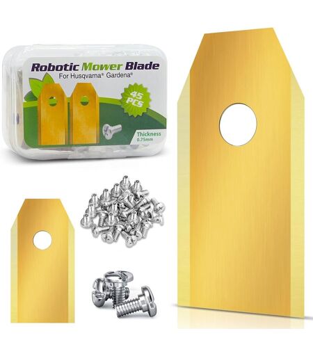 KALANKA-45 Lames de Rechange pour Tondeuse à Gazon, Lames en Titane pour Tous les Robots Husqvarna Automower, Gardena, Yardforce (3 g - 0,75 mm) + 45 Vis