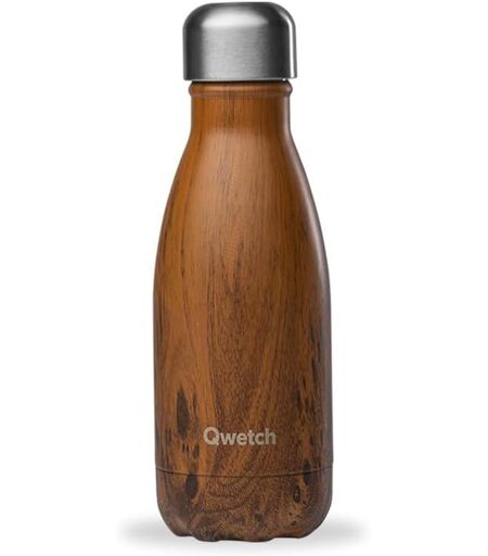Cheng-Qwetch - Bouteille Isotherme Wood 260ml - Gourde Nomade Inox - 24h Froid Et 12h Chaud - Etanche, Sans Bpa & Réutilisable - Gourde Isotherme Pour Sport, Voyage, Bureau, Randonnée