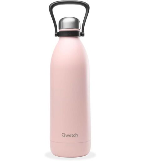 Kalanka-Qwetch - Grande Bouteille Isotherme - Rose Pastel 1,5l - 48h Froid Et 16h Chaud - Etanche & Sans Bpa - Gourde Inox Avec Poignée De Portage - Thermos Isotherme Pour Pique-Nique, Camping, Famil