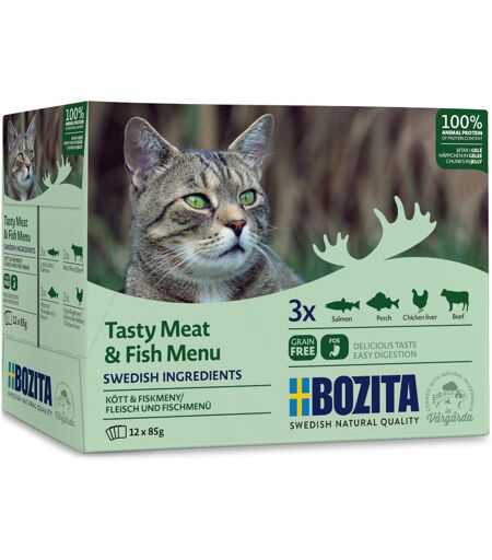 Bozita Bouchées en gelée 12 x 85 g pour chat - lot mixte viande & poisson (4 variétés)