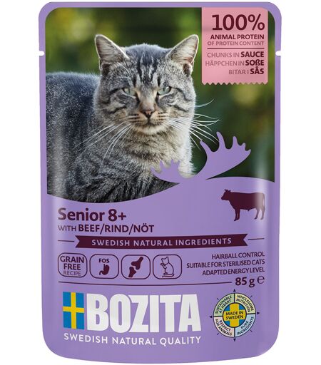 24x 85g Bozita bouchées en sauce senior beaucoup de bœuf nourriture pour chat humide