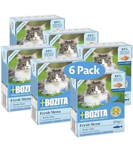 Découvrez la nourriture humide pour chat Bozita, délicieuse et nutritive, avec une forte proportion de saibling. Formule sans céréales, idéale pour les chats sensibles. Avec 7,5 % de protéines et 5 % de matières grasses, elle offre un équilibre parfait pour les gourmets. Respectueuse de l'environnement, elle garantit un goût inégalé. Contenu : 6 x 370 g. ...