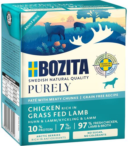 Bozita Purely est la nourriture idéale pour votre chien. La consistance moelleuse de pâté rend cet aliment particulièrement appétissant et facile à manger. Chaque variété contient deux sources de protéines animales pour une saveur irrésistible.... ...
