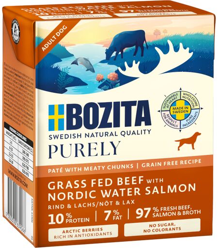 Bozita Purely est la nourriture idéale pour votre chien. La consistance moelleuse de pâté rend cet aliment particulièrement appétissant et facile à manger. Chaque variété contient deux sources de protéines animales pour une saveur irrésistible.... ...