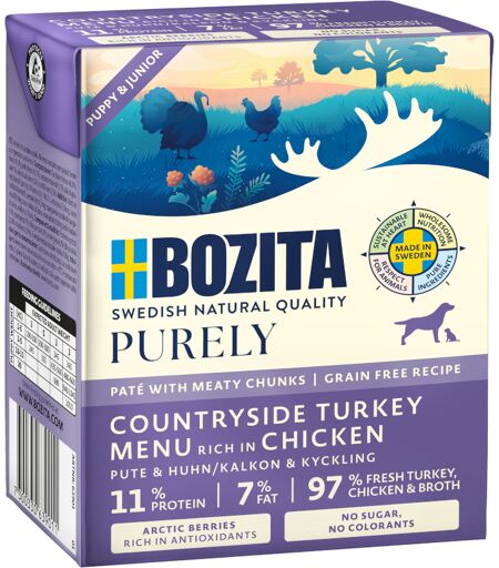 Bozita Purely est la nourriture idéale pour votre chien. La consistance moelleuse de pâté rend cet aliment particulièrement appétissant et facile à manger. Chaque variété contient deux sources de protéines animales pour une saveur irrésistible.... ...