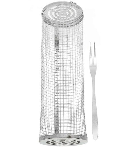 Panier à barbecue roulant en acier inoxydable à grille ouverte, panier cylindrique pour poisson, légumes, frites, L