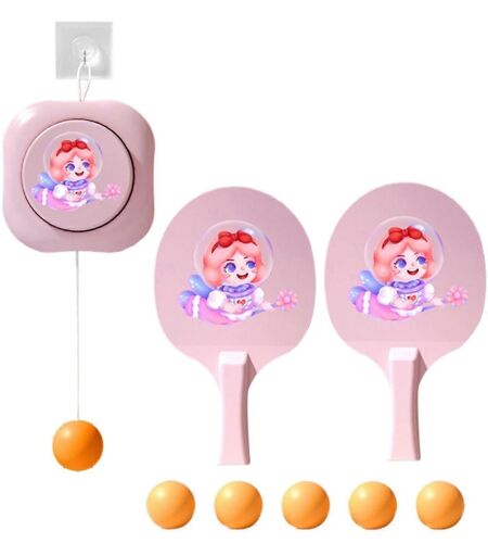 Entraîneur De Ping-Pong D'intérieur, Ensemble D'entraînement De Tennis De Table Réglable Avec Raquette, Jeu De Porte D'intérieur Rose