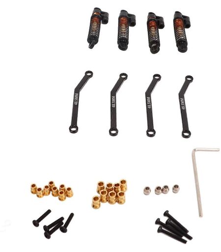 Amortisseur téléscopique fileté 2025RC avec tige de traction courbée pour voiture sur chenilles FMS FCX24 1/18 1/24 RC, noir