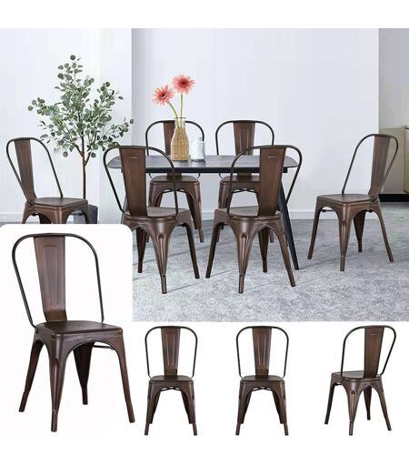 Aqrau Lot de 4 Chaises de Salle à Manger en Métal, Style Industriel, Chaise de Cuisine avec Dossier Haut, Chaise de Jardin Domestique, Couleur oxyde
