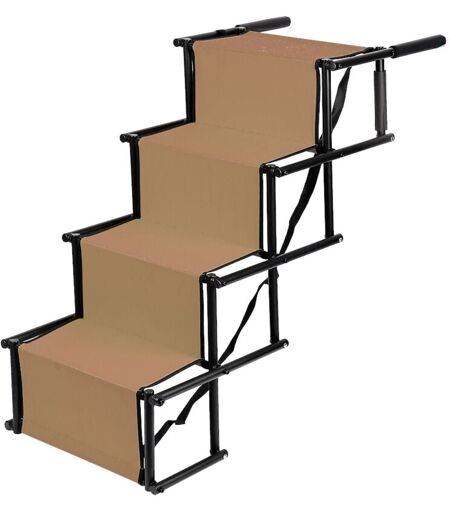 Yongqing - Escalier pliable pour chiens à hauteur réglable acier inoxydable + tissu Oxford brun