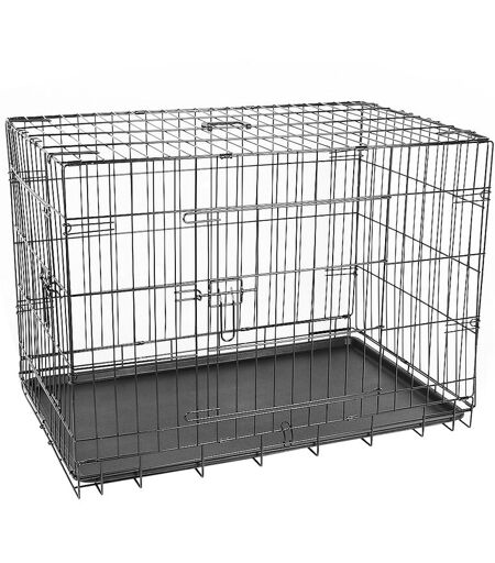AQRAU Cage pour Chien 2 Portes,Cage de Transport pour Chien Pliable,Caisse de Transport en métal,avec Plateau de Base en Plastique,Noir - 106x76x71cm