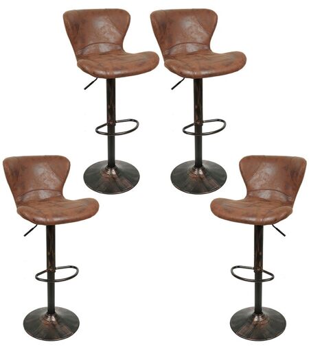 Yongqing - Lot de 4 Tabouret de Bar Rétro avec Dossier et Repose-Pieds Chaises Rembourrés en Suède Marro