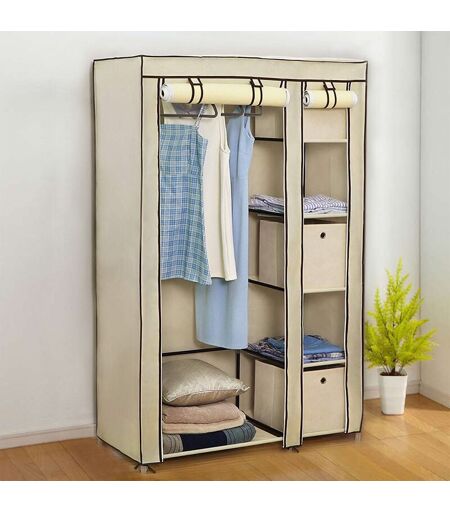 AQRAU Armoire de Rangement Garde-Robe, Penderie de vêtement Pliable en Tissu Non-tissé, avec Compartiments et Tringles, 2 Portes, Beige 110 x 45 x 175 cm