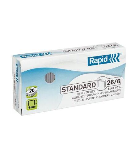 Boîte de 5000 agrafes Rapid 26/6 galvanisées5000 agraphes 26/6 de la marque RapidBoite de cinq mille agraphes pour votre bureau ...