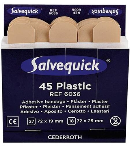 Recharge pour pansements adhésifs Salvequick - Cederroth. Lorsque vous retirez un pansement, la moitié de sa surface est prête à être collée. Le pansement doit être utilisé tout de suite. ...