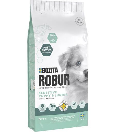 12kg Bozita Robur Sensitive Grain Free Puppy agneau nourriture sèche pour chiens