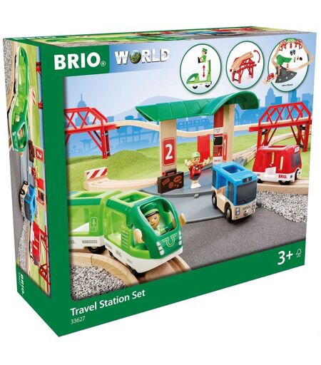 Rendez-vous au guichet pour prendre un billet. Après ça, grimpez dans le tram pour attraper votre prochain train. Jamais un long voyage n'avait été si amusant. Le circuit gare et connexion routière comporte une gare, des rails, un voyageur avec sa valise, un bus, un train et un tramway. - Garçon et Fille - A partir de 3 ans ...