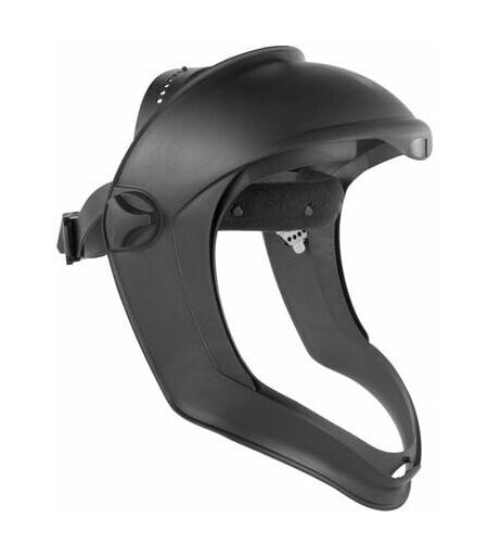 Monture de Masque de protection Bionic Honeywell (coque + serre-tête). Facilité d'utilisation, design et confort pour l'utilisateur. Plusieurs positions possibles pour s'adapter aux besoins : protection du menton et du haut de la tête étendue, serre-tête à mécanisme d'encliquetage. Protège contre les risques suivants : Abrasion Particules atmosphériques Risque biologique Produits chimiques Gaz, vapeurs, fumée Impact Projection Secteurs d'activités : Agriculture, Industrie chimique, Industrie Forestière, Sidérurgie et Métallurgie, Energie Eolienne Accessoires : Bandeau de protection hygiène, Films protecteurs pour écrans Bionic, Adaptateur Bionic pour casques de sécurité AS/NZS 1337, EPI catégorie CE, normes EN 169/EN 170/EN166, directives européennes 89/6868/CEE, ISO 9001/2000, classe optique I, niveau d'impact F et B (particules à haute vitesse, faible énergie ; particules à haute vitesse, moyenne énergie), T (impact testé sous des températures les plus extrêmes), C (reconnaissance ...