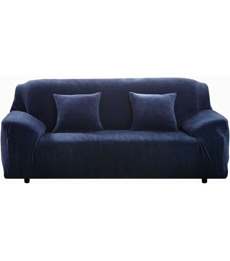 AHLSEN Housses de canapé épaisses 1/2/3/4 places pure color sofa protector velvet easy fit elastic fabric stretch couch slipcover (bleu, 2 places