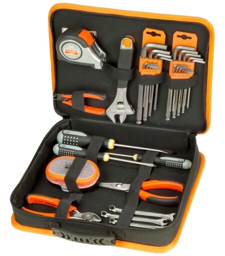 Ce sac à outils de BAHCO présente une solution de stockage facile à transporter et sans encombre pour vos outils quotidiens. Avec de multiples boucles élastiques, le sac à outils avec fermeture éclair garde les outils soigneusement organisés et bien en place. Le porte-cartes sur le devant et le côté peuvent être utilisés pour placer votre carte de visite ou une étiquette pour identifier le contenu. La poignée antidérapante et caoutchoutée facilite le transport du sac à outils. Ce sac à outils noir est durable et facile à nettoyer, tandis que les bords orange brillant le rendent plus visible. Avec une taille compacte, le sac à outils peut être porté facilement. Remarque : Les outils ne sont pas inclus dans la livraison. Couleur : Noir et orange Matériau : tissu polyester Dimensions : 33 x 6 x 27 cm (L x l x H) Boucles élastiques multiples pour une meilleure organisation des outils Porte-cartes externes Poignée en caoutchouc pour faciliter le transport Facile à ouvrir / à fermer avec 2 fermetures éclair Remarque : Les outils ne sont pas inclus dans la livraison Matériel: Polyester: 100% ...