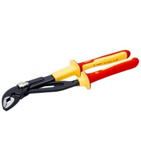 BAHCO - Pince multiprise isolée à réglage rapide avec poignées bimatière, 250 mm Caractéristiques principales de ce produit : Pince multiprise à réglage rapide 1000V. Cadre robuste et forme effilée. Acier allié haute performance, poignées bimatière pour une prise en main sûre et confortable. Finition phosphatée, traitée anti-corrosion. Levier latéral breveté auto-réglable. Poignée plate et ronde pourvue d'un dispositif de serrage automatique. Ouverture des mâchoires jusqu'à 35 % plus grande par rapport à la norme existante sur le marché. Tête étroite pour permettre une grande accessibilité dans les espaces restreints. Dents trempées (60 HRC à 62 HRC) pour un produit durable et une forte saisie des objets de toutes formes. Poignées 1000V bimatière ergonomiques offrant une excellente prise en main. Mâchoires fines pour une meilleure accessibilité. Dispositif de protection contre le risque d'écrasement des doigts. ISO 8976, CEI 60900. ...