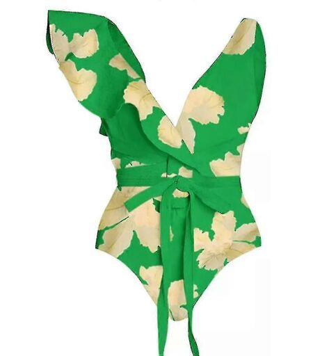 Maillot De Bain Une Pièce Taille Haute À Volants Et Motif Floral Hawaïen Pour Femme, Avec Long Paréo, Jupe Portefeuille, Vêtements De Plage D'été - 2023-Kids