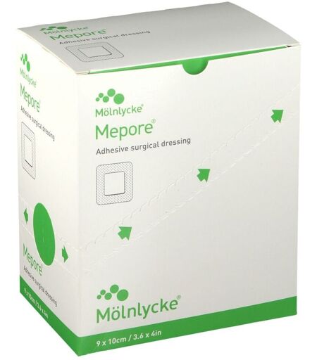 Taille du pansement:9 x 10 cm Indication:Protection des plaies faiblement à modérément exsudatives. Description du produit:Mepore® est un pansement absorbant, respirant et auto-fixant pour un large éventail de plaies associées à des niveaux d'exsudat faibles à modérés – telles que les plaies chirurgicales, les coupures et les abrasions. Le pansement se fixe solidement et en douceur à la peau à l'aide d'un adhésif à base d'eau qui n'irrite pas la peau, et est perméable à l'air pour empêcher la macération de la plaie. Conseils d'utilisation:Usage unique. Lire attentivement la notice. ...