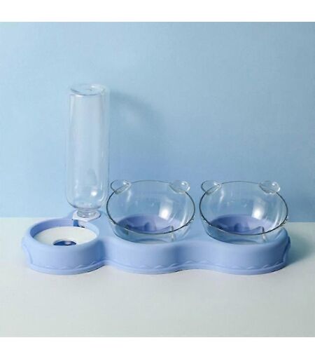 Triple Dog Cat Bowls Automatique Pet Feeder 15tilt Et 360rotatable Double Food Bowl Avec Automatique Bouteille D'eau Bol Détachable Petit Et Moyen-Bleu