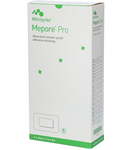 Taille du pansement:9 cm x 20 cmIndications:Mepore® Pro peut être utilisé sur les plaies faiblement à modérément exsudatives, telles que les plaies chirurgicales, les coupures et les abrasions.Description du produit:Respirant, Mepore® Pro est un pansement auto-fixant qui absorbe le sang et l'exsudat. Le film protecteur permet d'utiliser le pansement sous la douche et de protéger la plaie de l'eau et de la contamination. Mepore Pro est un pansement adhésif doux pour la peau qui offre une fixation sûre et délicate. Le film protecteur doux et élastique offre plus de confort au patient et s'adapte aux formes du corps.Protège la plaie de l'eau et de la contamination externeBarrière contre la contamination virale et bactérienne* Film protecteur doux et élastique pour plus de confortAbsorbe le sang et l'exsudatConseils d'utilisation:Lire attentivement le mode d'emploi.Composition:PolyacrylateConditionnement:30 pansements ...