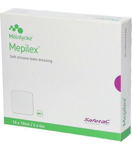 Taille du pansement:10 x 10 cmIndication:Mepilex® est conçu pour le traitement des plaies exsudatives. Vous pouvez adapter la taille de Mepilex® en le découpant pour correspondre à la localisation et la taille de la plaie. Cela en fait un pansement adapté pour les régions difficiles à traiter. Vous pouvez utiliser Mepilex avec notre système de fixation Tubifast™ .Doux et souple, ce qui le rend facile à utiliser et polyvalent.Moins de douleur lors du changement de pansementFerme les bords de la plaie pour éviter la macération. Gestion efficace de l'exsudat Description du produit:Mepilex est un pansement en mousse absorbante pour le traitement d'une large gamme de plaies chroniques et aiguës. Les propriétés hautement absorbantes assurent une prise en charge efficace de l'exsudat de la plaie. Chaque pansement Mepilex est doté de Safetac, une couche de contact en silicone qui minimise la douleur. Il est donc facile de retirer le pansement sans endommager la peau. De plus, Safetac scelle les bords de la plaie pour protéger la peau des dommages causés par les fuites et la macération. Mepilex peut être coupé sur mesure selon les besoins.Conseils d'utilisation:Avant d'appliquer le pansement, nettoyez systématiquement la plaie. Le pansement doit recouvrir le lit de la plaie en dépassant d'au moins 2 cm sur la peau périlésionnelle. Utilisez Tubifast lorsqu'une fixation est nécessaire.Conditionnement5 pansements ...