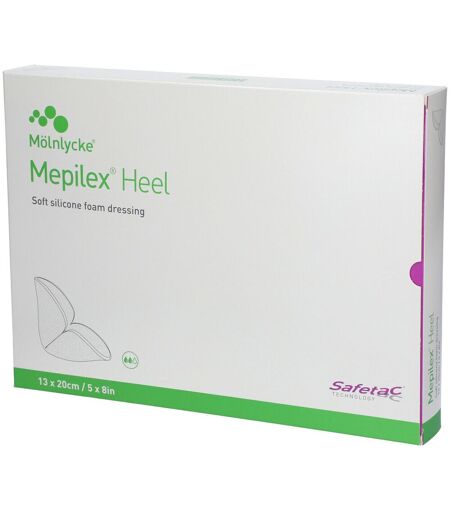 Taille du pansement: 6 cm x 7 cm Indications: Mepilex® est un pansement polyvalent pour plaies exsudatives, douloureuses ou au pourtour fragile. C’est le pansement idéal des ulcères de jambe ou de pied, plaies de pression et ulcères de pied diabétique. Mepilex® peut être utilisé comme pansement primaire des plaies exsudatives superficielles ou comme pansement secondaire des plaies profondes. Description du produit: Mepilex® Heel est un pansement hydrocellulaire de forme conçu pour les plaies du talon. Mepilex Heel minimise la douleur ainsi que les lésions au niveau de la plaie ou de la peau lors du changement du pansement. La haute capacité d'absorption de Mepilex Heel absorbe efficacement l'exsudat produit par la plaie; et sa conformabilité lui permet de s'adapter aisément et confortablement au talon. Réduit la douleur lors des changements de pansement Réduction le risque de macération Absorbe efficacement l'exsudat Spécialement adapté à la forme du talon Conseils d'utilisation: Nettoyer délicatement la plaie ; assécher la peau péri-lésionnelle. Mepilex® Heel doit déborder la plaie d’au moins 2 cm. Retirer la portion plus longue de la pellicule antiadhérente. Fixer le pansement sous le pied. Retirer la portion courte de la pellicule et mouler le pansement autour du talon pour rapprocher les bords. Pour fixer solidement Mepilex® Heel, utiliser un bandage tubulaire léger comme Tubifast®, ou avec Mepore® Film ou Mefix®. Composition: Enduction de silicone Safetac®. Conditionnement: 5 pansements ...