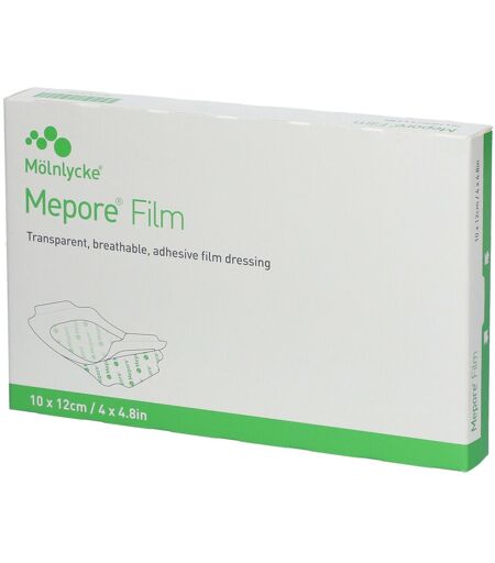 Taille du pansement:12 cm x 10 cmIndications:Mepore® Film peut être utilisé comme pansement conformable avec fixation pour recouvrir les pansements primaires, notamment les hydrogels et les alginates. Mepore Film est conçu pour le traitement d'un large éventail de plaies propres en phase de granulation, telles que les brûlures superficielles, les sites IV, les abrasions, les lacérations, les sites donneurs, les plaies chirurgicales fermées, les escarres superficiels et en prévention des lésions cutanées.Description du produit:Mepore® Film est un pansement film auto-fixant idéal comme pansement secondaire avec fixation pour recouvrir l'hydrogel ou l'alginate. Vous pouvez également l'utiliser pour le traitement d'un large éventail de plaies propres en phase de granulation.Mepore Film est perméable à l'air pour prévenir la macération de la plaie, et conçu pour garantir une application facile, même lorsque vous portez des gants. Grâce à sa transparence, vous pouvez observer facilement la zone périlésionnelle.Respirant pour prévenir la macération et contribuer à maintenir la plaie dans un milieu humideLe papier de protection est facile à retirer et aseptiqueAdhésif à base d'eau et sans solvant assurant une fixation douceBarrière contre la contamination virale et bactérienneLe matériau est conformable et flexible pour ne pas entraver les mouvements du corpsConseils d'utilisation:Lire attentivement le mode d'utilisationComposition:PolyuréthaneConditionnement:10 pièces ...