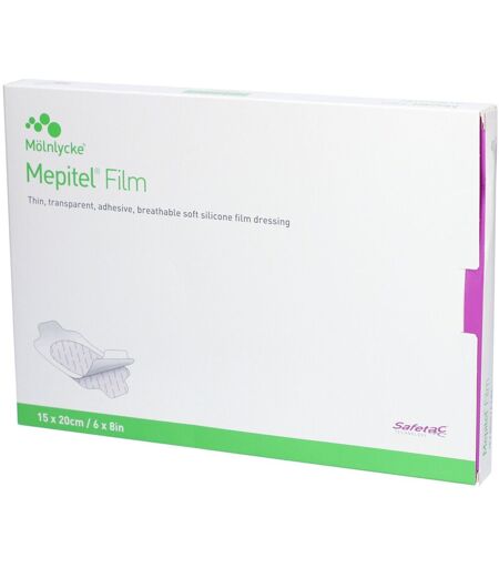 Taille du pansement:15 x 20 cmIndications:Protection des peaux fragilesDescription du produit:Mepitel® Film est un film silliconé transparent conçu pour protéger la peau fragile et sensible ainsi que minimiser le risque de lésions cutanées. Vous pouvez utiliser ce film respirant doux comme pansement unique ou l'associer à d'autres produits.Mepitel® Film est hautement conformable et s'adapte parfaitement aux différentes morphologies. Mepitel® Film forme une barrière souple, transparente et imperméable qui protège la peau ou la plaie de l'eau eet d'éventuelles contaminations microbiennes. Mepitel® Film possède une enduction de silicone sur toute la surface, issue de la technologie Safetac® pour garantir un retrait atraumatique pour la plaie et indolore pour le patient grâce à une adhérence douce et sélective.Mepitel® Film peut être utilisé en protection des peaux fragiles et sensibles sous un adhésif traditionnel pour éviter la douleur et le traumatisme au retrait. Mepitel® Film ne doit pas être utilisé comme système de fixation de dispositif médical (cathéter, intraveineux, perfusion...). Vous pouvez également utiliser Mepitel® Film dans la préventiuon et la protection des réactions cutanées radio-induites. Lors d'un essai récent, randomisé et contrôlé, la gravité des réactions cutanées a été réduite de plus de 92%.Protège la peau fragile et sensible Minimise le risque de lésions cutanéesTransparent pour faciliter le contrôleS'adapte facilement à toutes les localisationsConseils d'utilisation:Lire attentivement le mode d'emploiComposition:Enduction en silicone Safetac®Conditionnement:Lot de 10 pansements ...