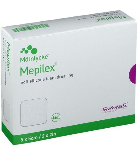 Taille du pansement:5 x 5 cmIndication:Mepilex® est conçu pour le traitement des plaies exsudatives. Vous pouvez adapter la taille de Mepilex® en le découpant pour correspondre à la localisation et la taille de la plaie. Cela en fait un pansement adapté pour les régions difficiles à traiter. Vous pouvez utiliser Mepilex avec notre système de fixation Tubifast™ .Doux et souple, ce qui le rend facile à utiliser et polyvalent.Moins de douleur lors du changement de pansementFerme les bords de la plaie pour éviter la macération. Gestion efficace de l'exsudat Description du produit:Mepilex est un pansement en mousse absorbante pour le traitement d'une large gamme de plaies chroniques et aiguës. Les propriétés hautement absorbantes assurent une prise en charge efficace de l'exsudat de la plaie. Chaque pansement Mepilex est doté de Safetac, une couche de contact en silicone qui minimise la douleur. Il est donc facile de retirer le pansement sans endommager la peau. De plus, Safetac scelle les bords de la plaie pour protéger la peau des dommages causés par les fuites et la macération. Mepilex peut être coupé sur mesure selon les besoins.Conseils d'utilisation:Avant d'appliquer le pansement, nettoyez systématiquement la plaie. Le pansement doit recouvrir le lit de la plaie en dépassant d'au moins 2 cm sur la peau périlésionnelle. Utilisez Tubifast lorsqu'une fixation est nécessaire.Conditionnement5 pansements ...