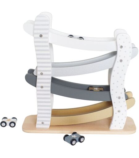 Votre enfant va adorer faire dévaler les 4 petites voitures sur cette piste en bois. Ce jeu d'éveil stimulant et divertissant favorise la motricité et la dextérité de l'enfant, ainsi que son acuité visuelle avec le suivi du mouvement. Cascade de voitures Silver, un looping de voitures en bois de la marque JaBaDaBaDo. ...