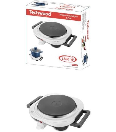 Techwood Plaque électrique chauffante 1 Foyer 1500 W Protection contre la surchauffe Blanche