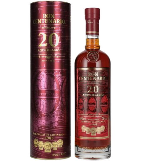 Le rhum Ron Centenario FUNDACIÓN 20 Sistema Solera, d'une teneur en alcool de 40% vol. et conditionné dans une bouteille de 0,7 litre, présenté dans un joli coffret cadeau (GB), représente le riche héritage et l'artisanat de la production de rhum cos Couleur : acajou profond avec des reflets dorés qui signalent sa longue période de maturation et sa grande qualité. Nez : Complexe et accueillant avec des notes de caramel, de vanille et de fruits tropicaux, suivies de subtiles touches de tabac et d ...