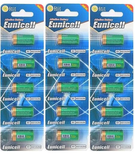 Eunicell Lot de 15 piles alcalines sans mercure 4LR44 6 V Contenu de la livraison : 3 blisters de 5 piles soit 15 piles 4LR44 Ce type de batterie est également connu sous le nom de 4LR44, 476A, PX28A, A544, V4034PX, K28A. Tension de fonctionnement ...