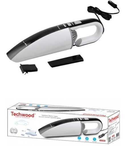 Techwood Aspirateur à Main 12V Blanc/Noir Aspirateur Allume Cigare pour usage Sec et Humide 30 W 12V