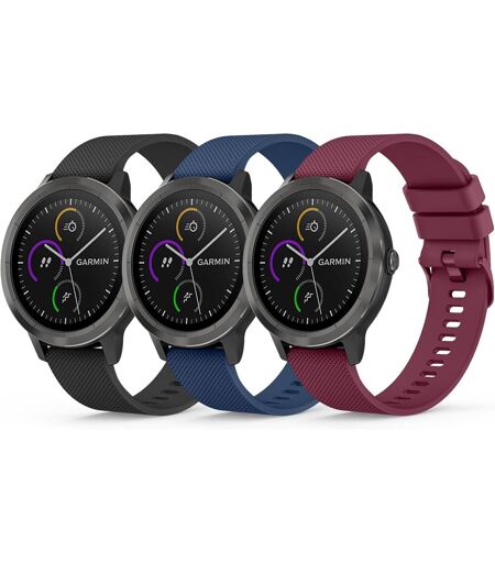 3 Pieces Bracelet Compatible Pour Garmin Vivoactive 3 /Vivoactive 3 Music/Venu, 20mm Sport Silicone Souple Bracelet Avec Garmin Venu Sq/Sq 2/Venu 2 Plus (Noir/Bleu Foncé/Vin Rough[Mon9262625]