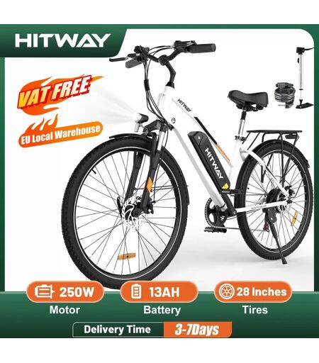 HITWAY Vélo Électrique, 28" Vélos à Assistance Électrique, Ville E-Bike avec Batterie Amovible 36V 13Ah, Moteur 250W, 7 Vitesses