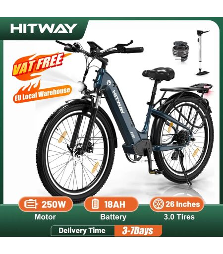 HITWAY 26X3.0 City Electric Bike Pedelec 250W City Cruiser E Bike 48V 18Ah Replaceable Battery 55-80 Km 7 Speed Commuter E Bike ...